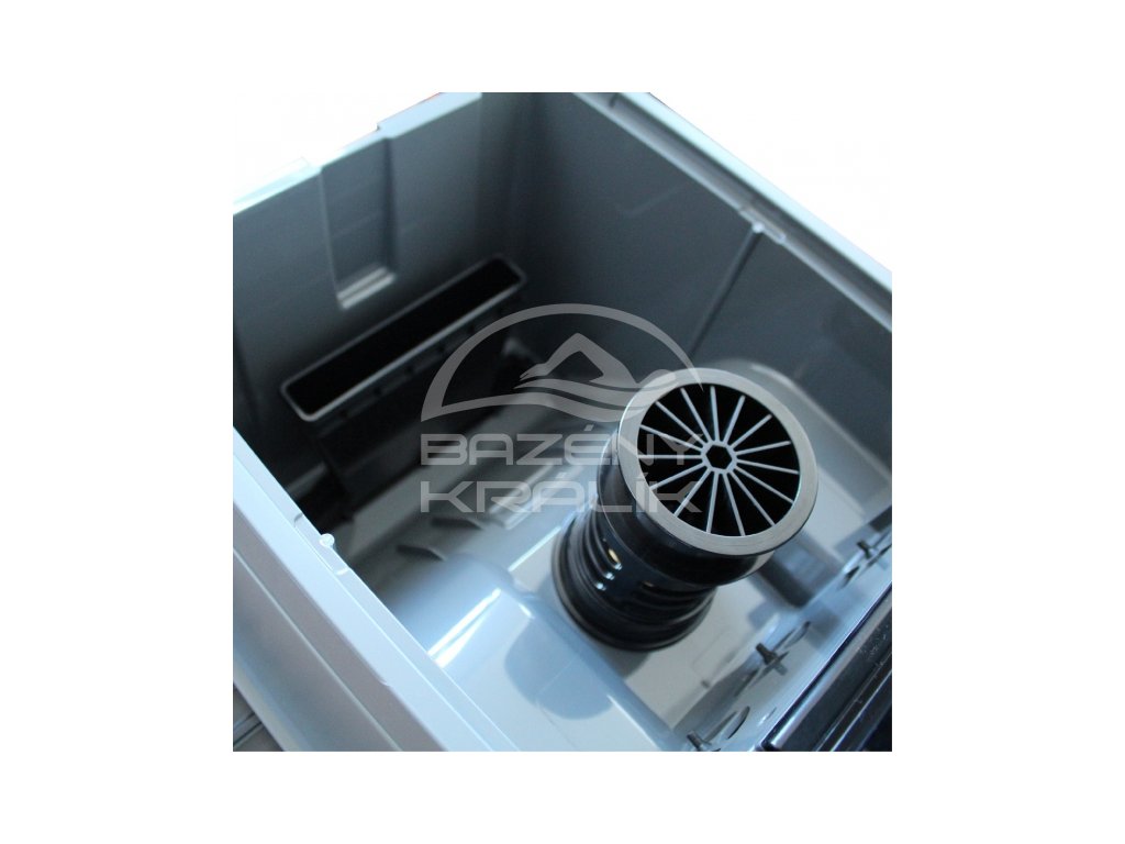 Filtrační koš má jemnost filtru 150 µm a objem 3 litry, takže jej lze použít i ve větších nebo silně znečištěných bazénech.