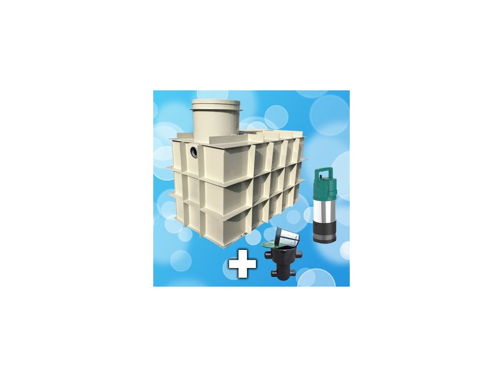 Samonosná hranatá nádrž o objemu 12m3 bez nutnosti obetonování na deštovou vodu, plně vystrojená čerpadlem a filtrací s vnitřními rozvody, atd. Vhodná pro dotaci "DEŠŤOVKA"