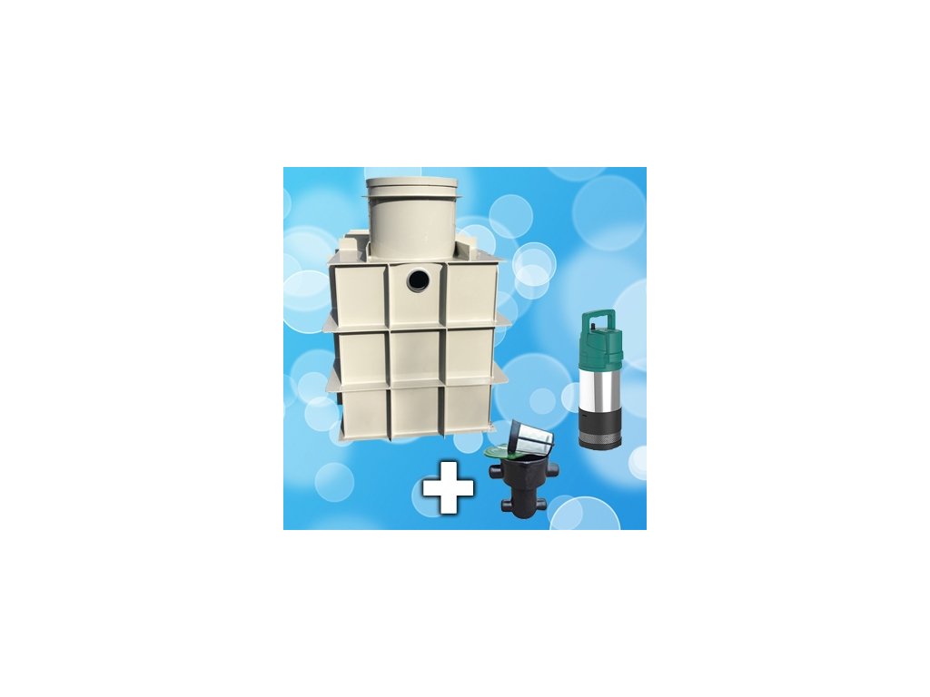 Nádrž je vybavená vnitřními stupadly, čerpadlem s automatickým provozem - parametry níže v přiloženém dokumentu (spíná u 2,5baru), filtrací v samostatné šachtě a kompletními vnitřními rozvody dn 32 (1" coul) a tichým nátokem.