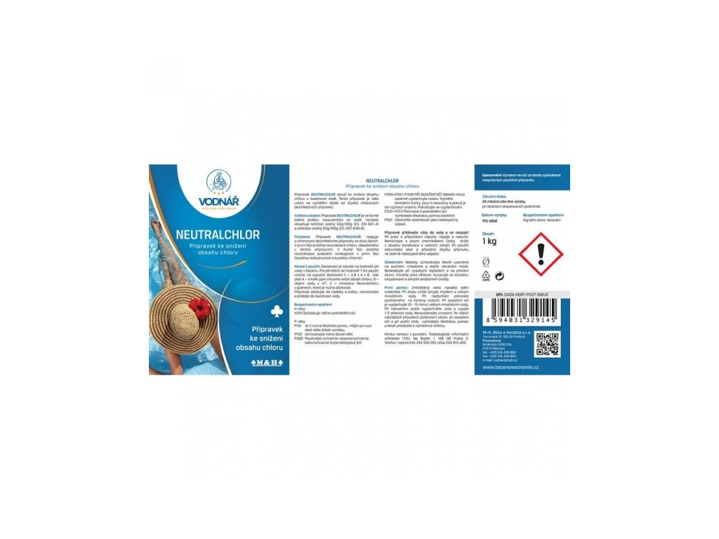 Neutralchlor je přípravek ve formě prášku, který je určen na snížení obsahu chloru v případě přechlorování bazénové vody. Tento přípravek je také určen k vyčištění obalů od zbytků chlorových dezinfekčních přípravků.Bazénová voda tak díky tomuto přípravku bude mít ideální obsah chloru.